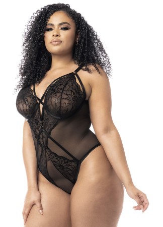 Body sexy noir, grande taille, avec jarretelles détachables - MAL8754XBLK