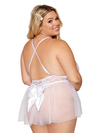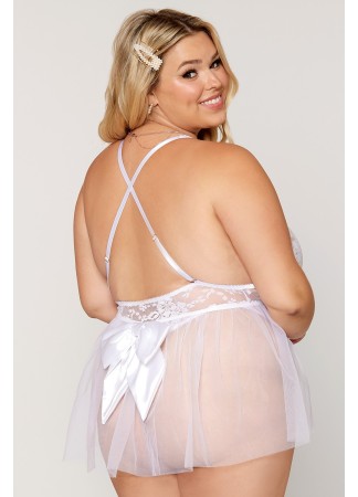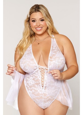 Body dentelle blanche, grande taille, avec tulle amovible de la collection Dreamgirl lingerie sexy, vente en dropshipping de lingerie