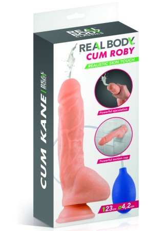 Découvrez le gode réaliste éjaculateur ventouse “Cum Roby” de 23 cm de Real Body. Il est conçu pour procurer des sensations plus vraies que nature,  grâce à ses nombreuses actions incroyables.