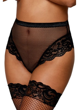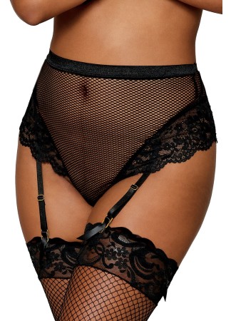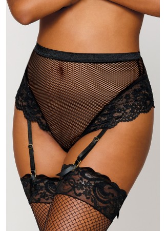 String résille taille haute avec porte-jarretelles noir - DG1478BLK