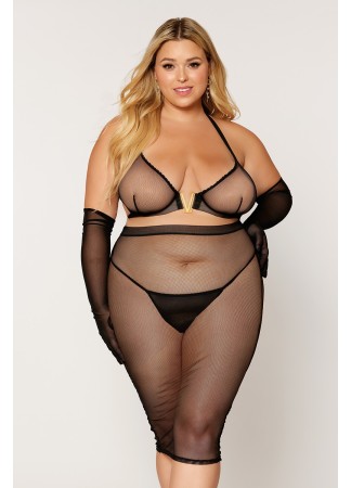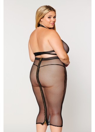 Ensemble lingerie sexy, spécial grande taille, composé de deux pièces sexy avec soutien-gorge et jupe en résille noire de chez votre distributeur Dreamgirl, vente en dropshipping de lingerie sexy.