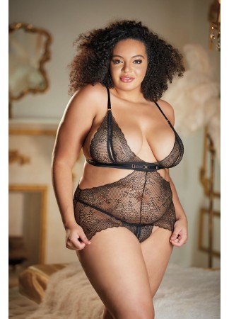 Nuisette dentelle noire grande taille avec string ouvert ROSIE - 17-6002XB