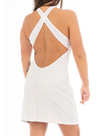 Robe courte blanche simili cuir, bretelles croisées sur la poitrine - robe sexy en simili cuir Margot de la collection Be Lily
