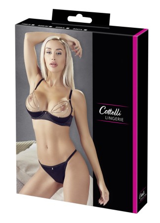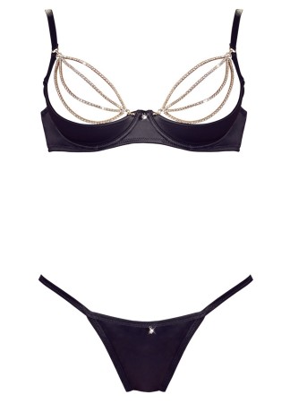 Soutien-gorge sexy demi-seins en satin avec chainette et string - OR2221179BLK